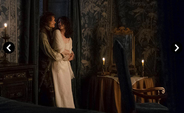 In Jamie’s absence, his sister Jenny has taken on the responsibility of running Lallybroch. To portray her feminine touch, Steele’s team adorned the set with rosebushes and assorted plants. “Everything looks more colorful than in the scenes when Jamie had been beaten,” says Steele. “We wanted people to feel that she had taken care of things while he was gone.”