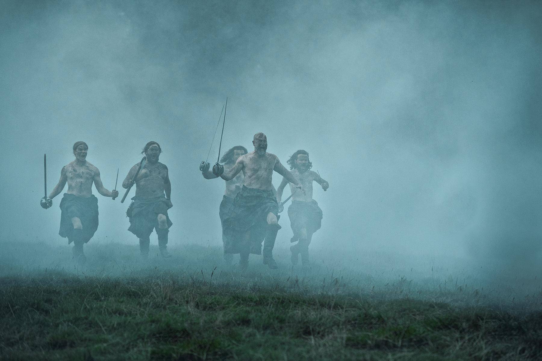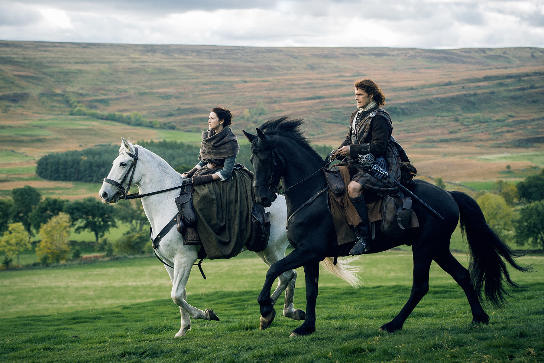 Characters that can be seen in these photos include Claire (Caitriona Balfe), Jamie (Sam Heughan, Dougal (Graham McTavish), Angus (Stephen Walters), and Rupert (Grant O’Rourke).