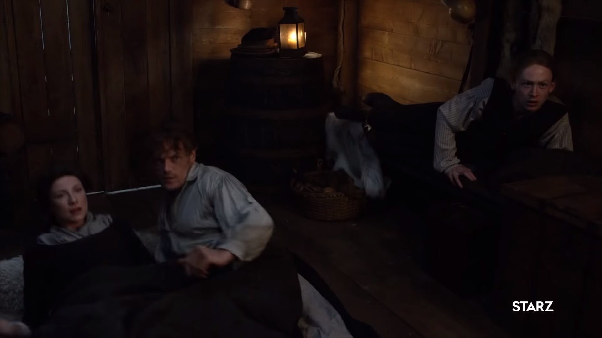 - Fergus (Cesar Domboy) and Marsali (Lauren Lyle) on a boat. This looks like the same scene from the season three finale.