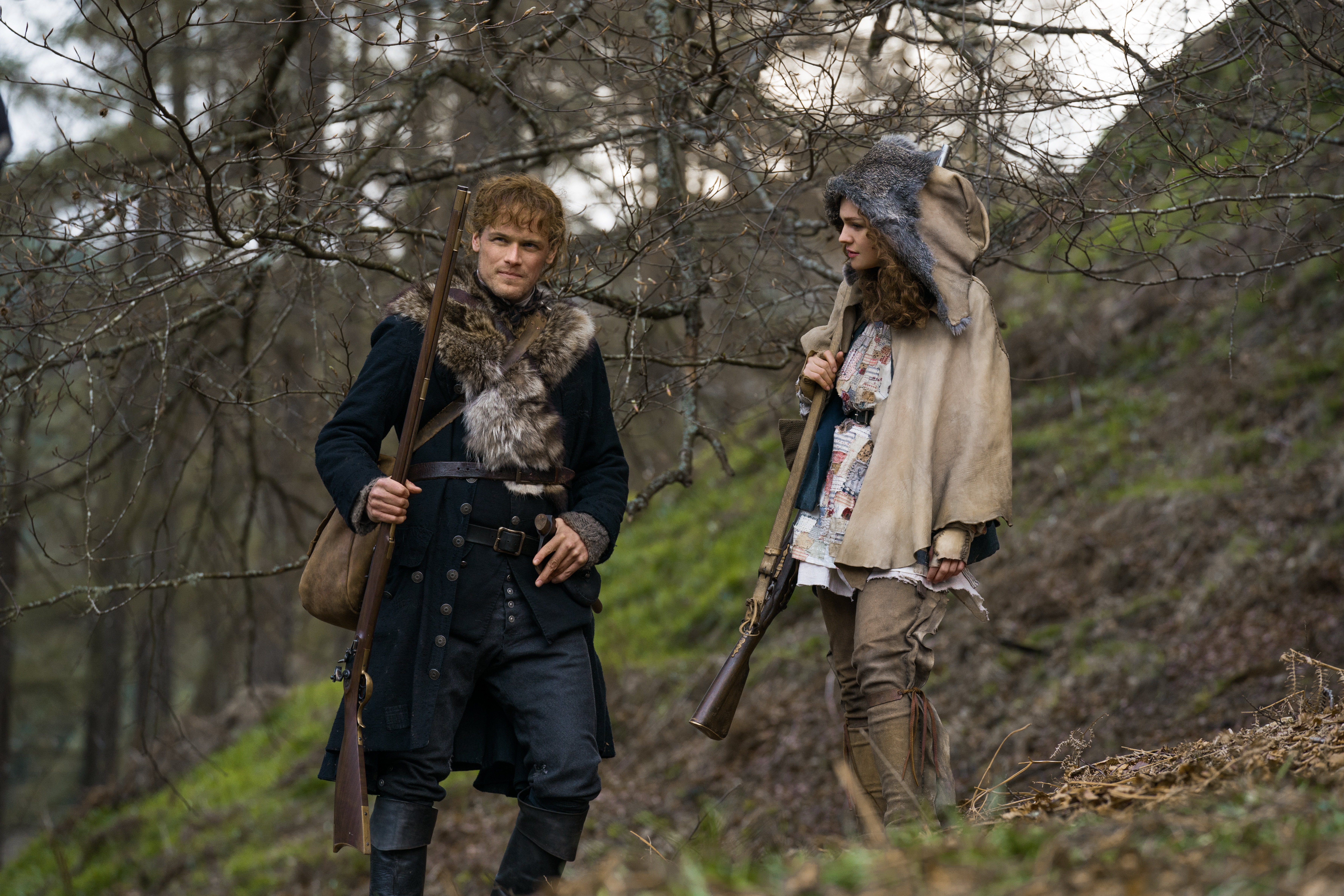 Characters that can be seen in these photos include Brianna (Sophie Skelton), Claire (Caitriona Balfe), Jamie (Sam Heughan), Lizzie (Caitlin O’Ryan), and Murtagh (Duncan Lacroix).