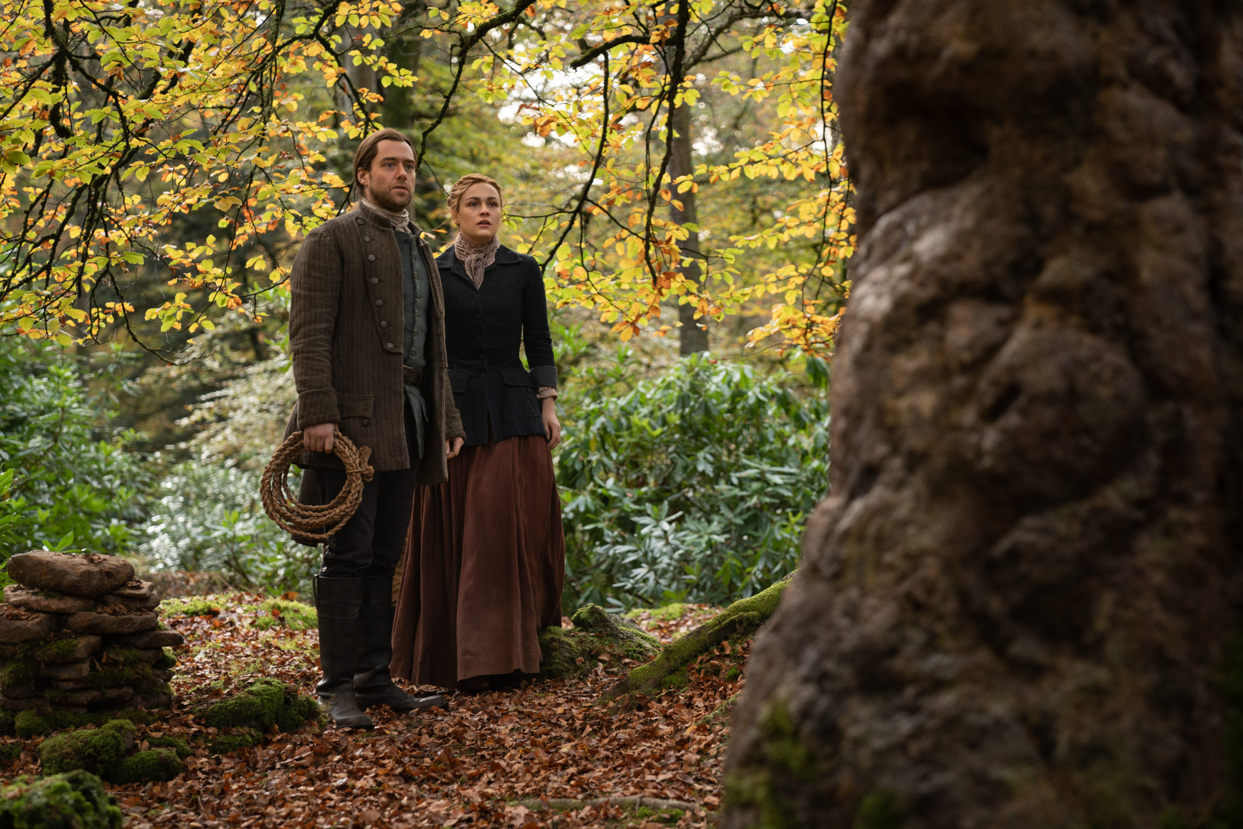 Characters that can be seen in these photos include Jamie (Sam Heughan), Claire (Caitriona Balfe), Brianna (Sophie Skelton), Roger (Richard Rankin), Ian (John Bell), Ulysses (Colin McFarlane), Marsali (Lauren Lyle), Lord John (David Berry), Lionel Brown (Ned Dennehy), and Fergus (César Domboy).