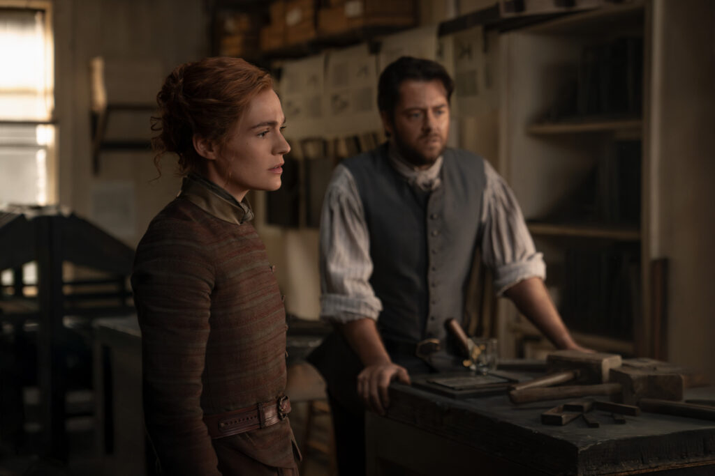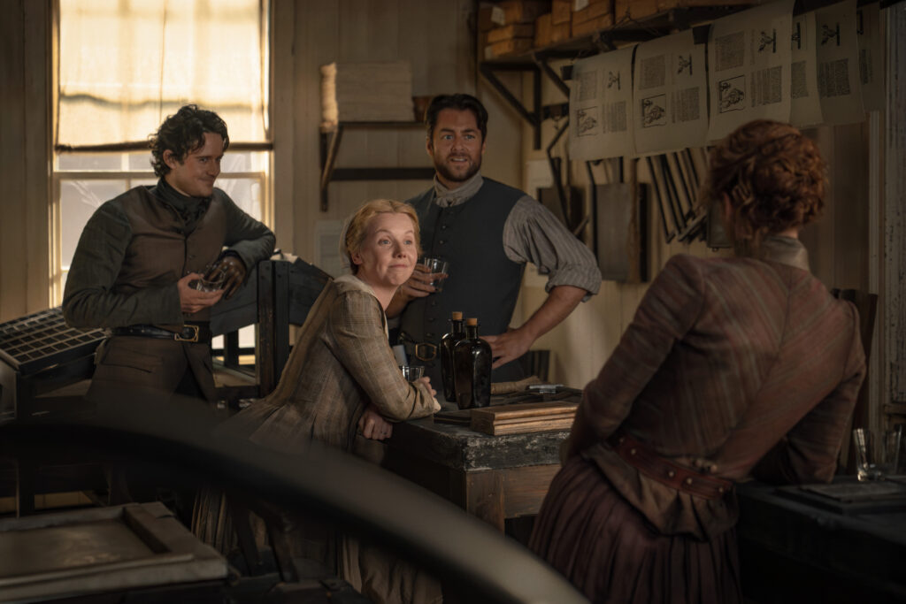 Below are the official photos from the fourth episode of the eighth season of Outlander, episode 804, “Muskets, Liberty, and Sauerkraut.”