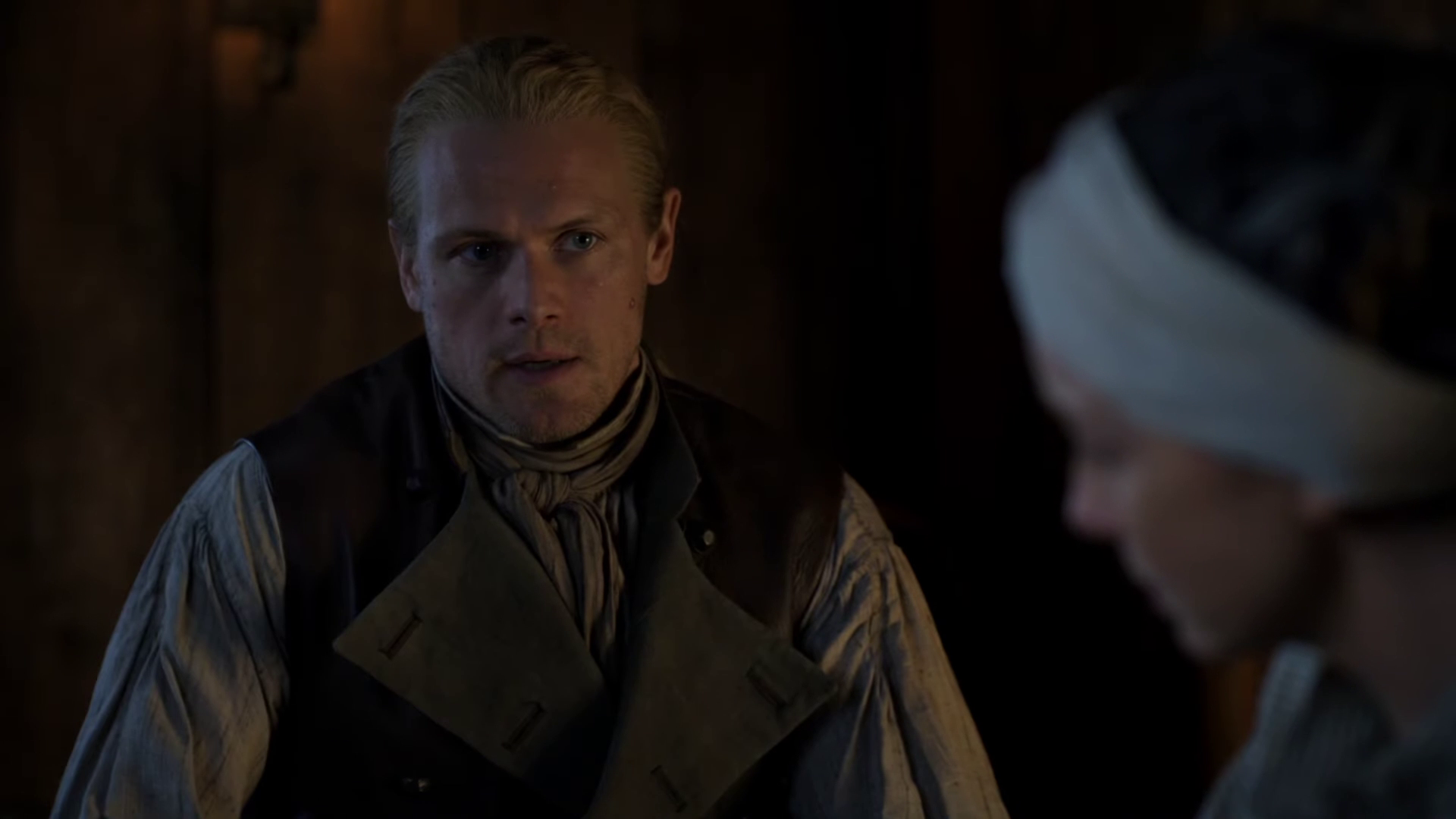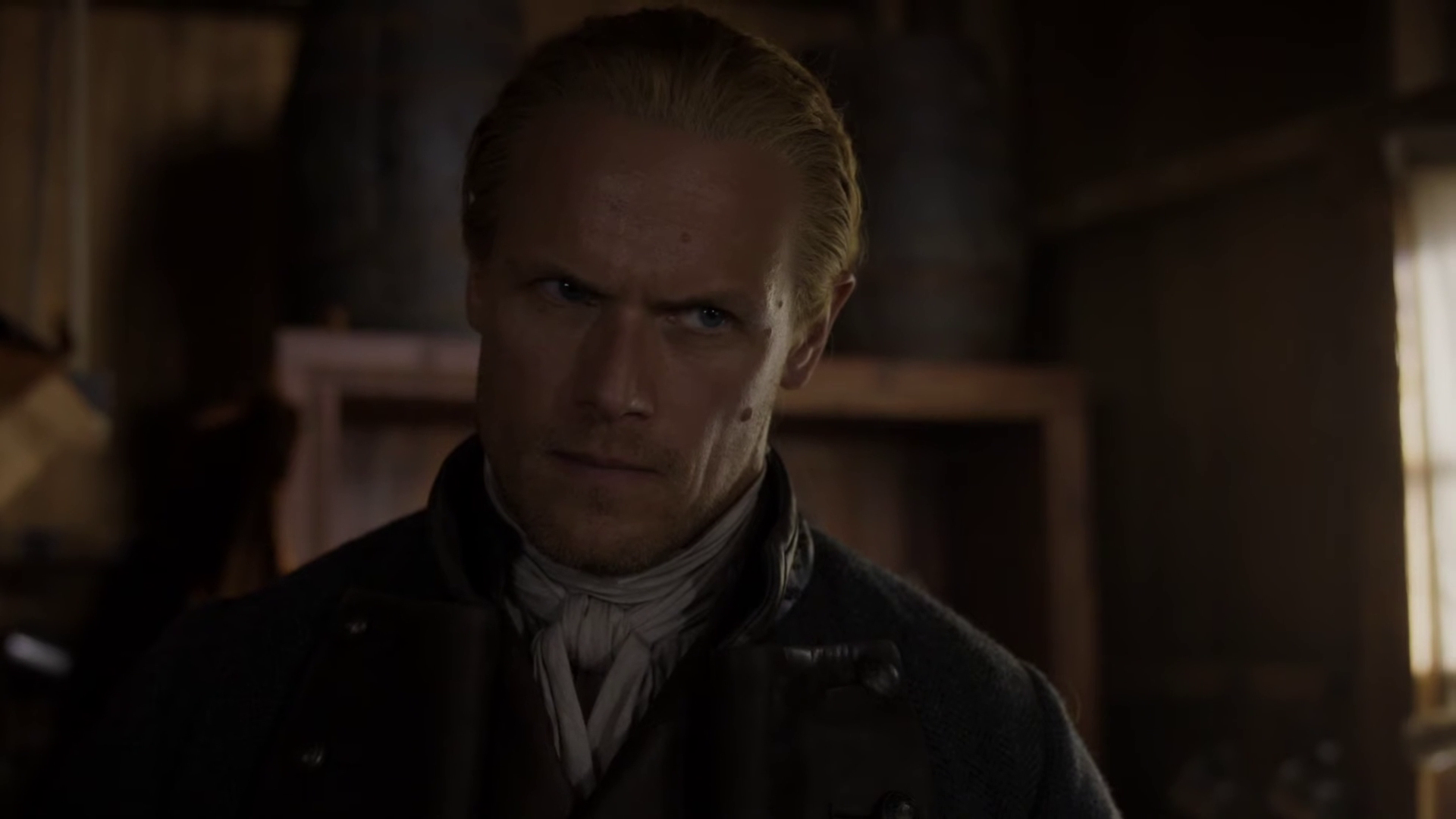 The preview reveals a significant amount of conflict — between the Frasers and their neighbors, between Jamie (Sam Heughan) and Claire (Caitriona Balfe), between Jamie and Lord John (David Berry), and possibly also between William (Charles Vandervaart) and Lord John. It looks like Claire continues to flex her doctor muscles in this episode as well.