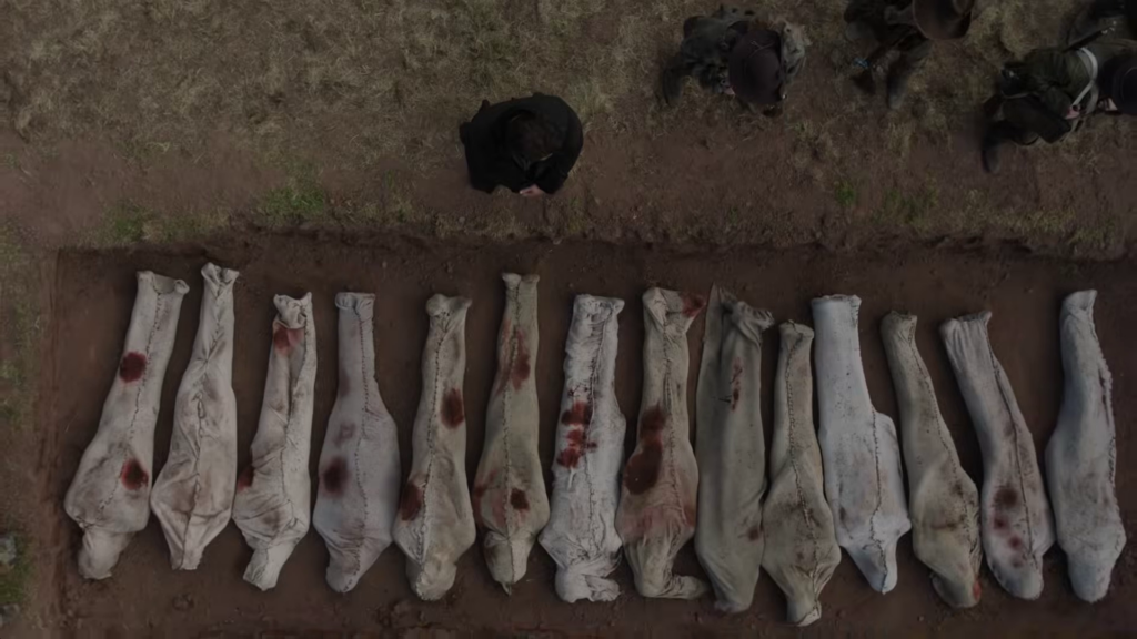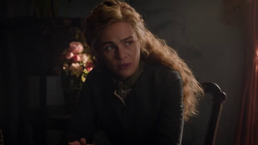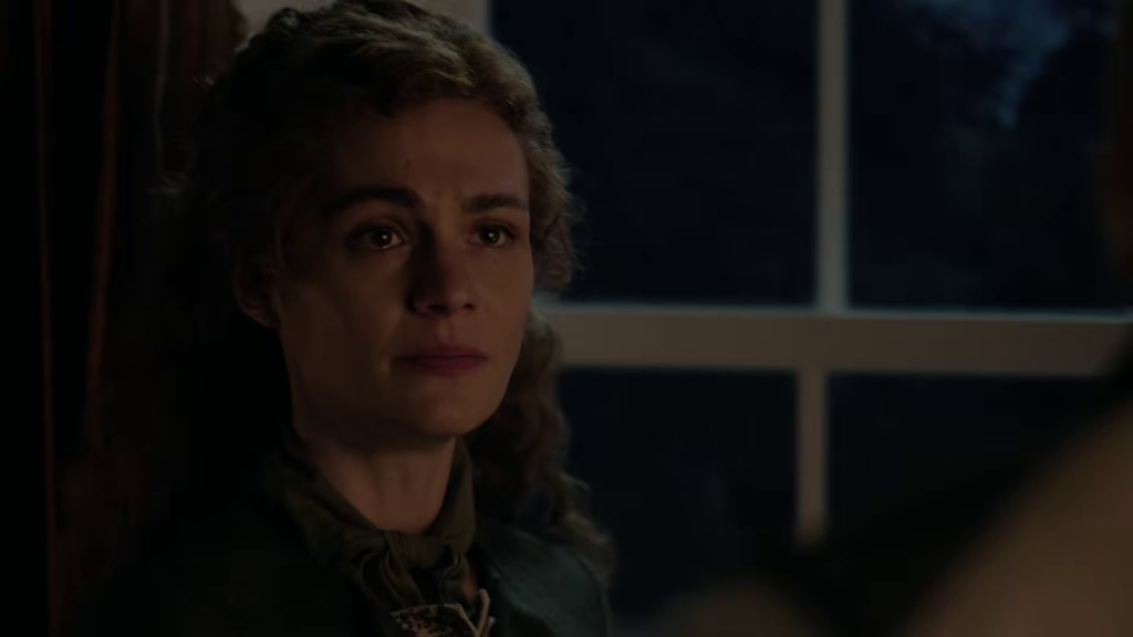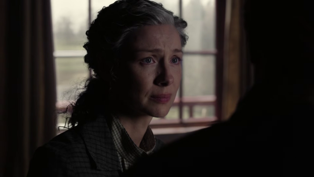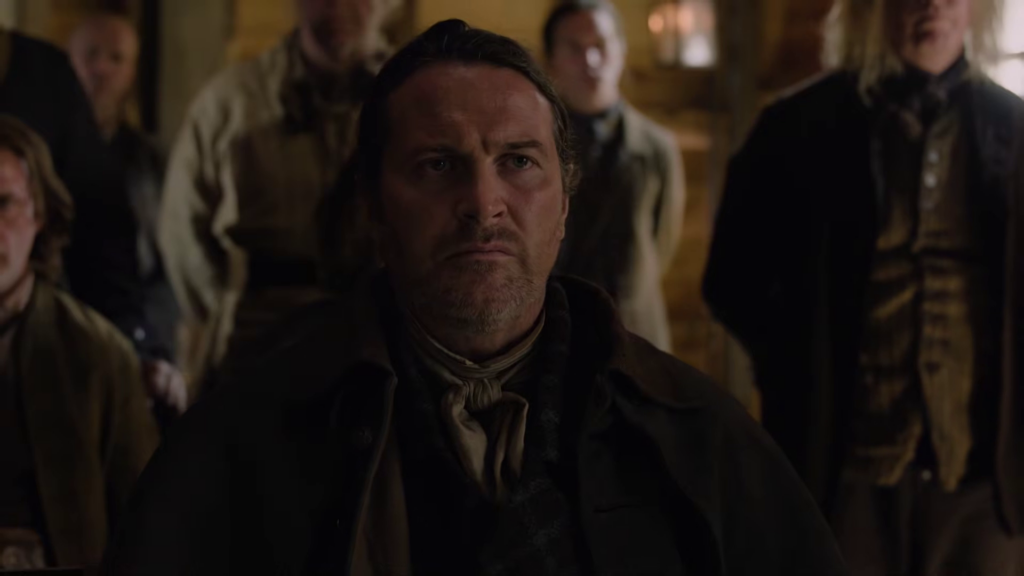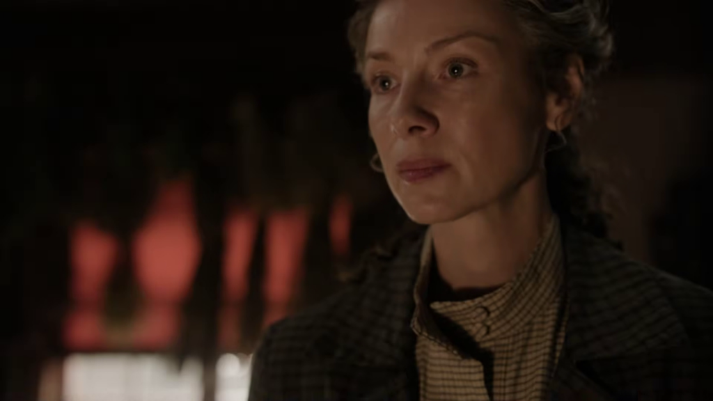 The preview shows Brianna (Sophie Skelton) being stuck at Lord John’s house with William (Charles Vandervaart) as a battle starts, and Roger (Richard Rankin) is still stuck at a camp. Things also seem to be coming to a head between Cunningham (Kieran Bew) and Jamie (Sam Heughan), and rifles are being drawn. Elspeth (Frances Tomelty) appears to stick her foot in her mouth around Claire (Caitriona Balfe), and I wonder if Claire holds her tongue.
