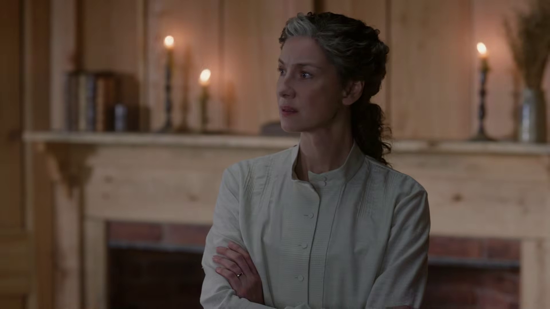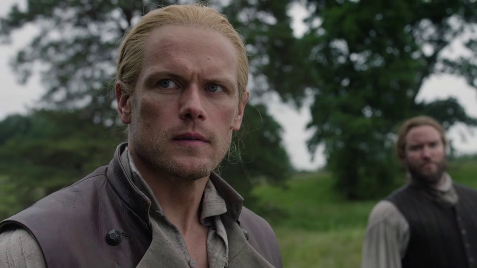 The preview shows Brianna (Sophie Skelton) being stuck at Lord John’s house with William (Charles Vandervaart) as a battle starts, and Roger (Richard Rankin) is still stuck at a camp. Things also seem to be coming to a head between Cunningham (Kieran Bew) and Jamie (Sam Heughan), and rifles are being drawn. Elspeth (Frances Tomelty) appears to stick her foot in her mouth around Claire (Caitriona Balfe), and I wonder if Claire holds her tongue.